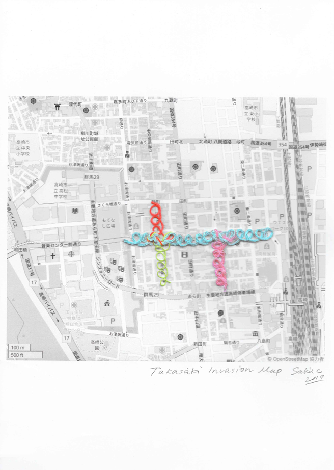 2017年10月3日〜10月24日 アクリル糸、ポリエステル糸 群馬県高崎市「アートプロジェクト高崎 2017」にてインスタレーション