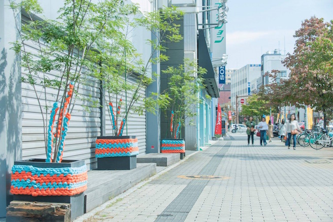 Oct.3rd, 2017 – Oct.24th, 2017 Acrylic yarn, polyester yarn Takasaki city, Gunma, “Art Project Takasaki 2017”